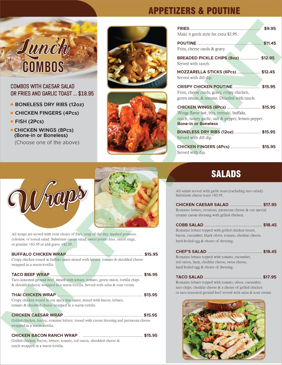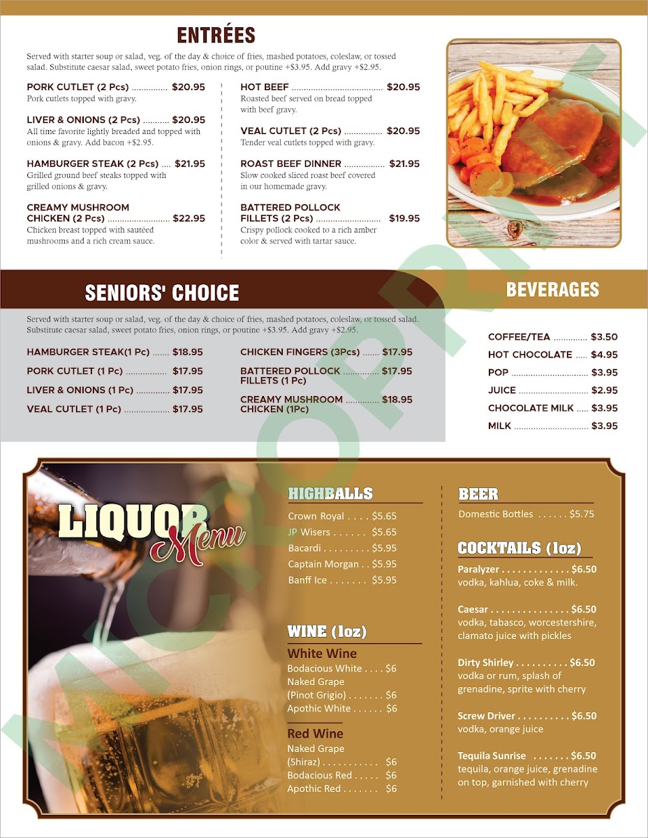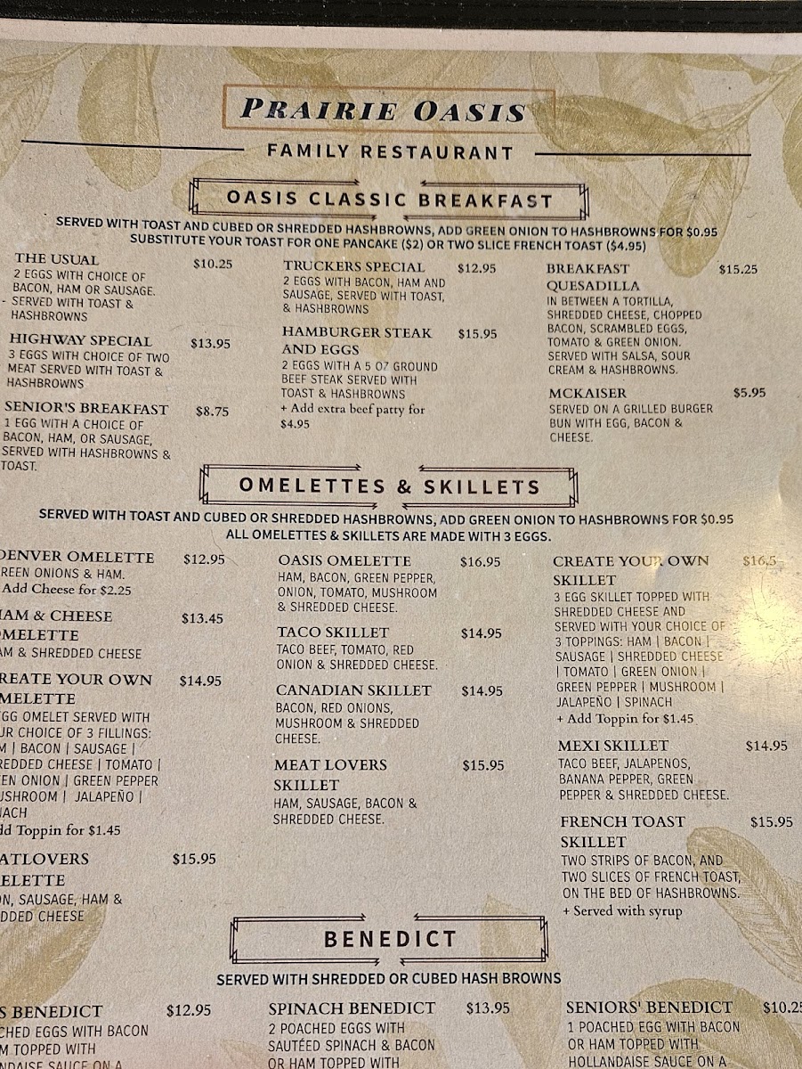 From a reviewer’s perspective, the menu at Prairie Oasis Family Restaurant offers a wide, comforting selection that covers everything from hearty breakfasts to satisfying dinners. The appetizer section features crowd-pleasers like Chicken Wings (8 Pcs), Chicken Fingers (4 Pcs), and Breaded Pickle Chips (8 Oz), along with classic Fries and Poutine. House specialties such as the Patty Melt, Clubhouse, Denver, Chicken Fettuccine Alfredo, and Reuben provide familiar diner-style comfort, while breakfast lovers can enjoy generous plates like the Highway Special, Senior's Breakfast, Truckers Special, Breakfast Quesadilla, and Hamburger Steak And Eggs. The burger lineup is particularly appealing, including the Cheese Smash Burger, Triple Xtreme Smash Burger, Spicy Jalapeño Smash, Four Patty Smash, and Double Cheese Smash, alongside favorites like the Classic Cheeseburger and BBQ Bacon Cheddar Burger. There are also lighter options such as Taco Salad, Cobb Salad, Chef's Salad, and Chicken Caesar Salad, plus hearty entrées like Roast Beef Dinner and Creamy Mushroom Chicken (2 Pcs). To finish, desserts like Strawberry Champagne Cheesecake, Carrot Cake, and Chocolate Extravaganza Cake make the menu feel complete. Overall, the menu emphasizes generous portions, classic comfort dishes, and a family-friendly variety that makes it easy for everyone to find something satisfying.
